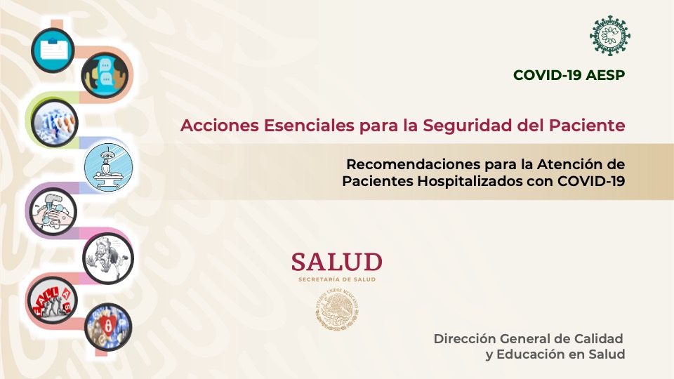 Al finalizar el programa, el participante será capaz de conocer e implementar las Acciones Esenciales para la Seguridad del Paciente durante la pandemia COVID-19 para la disminución de riesgos en la atención para el paciente y profesionales de la salud en el ámbito hospitalario.